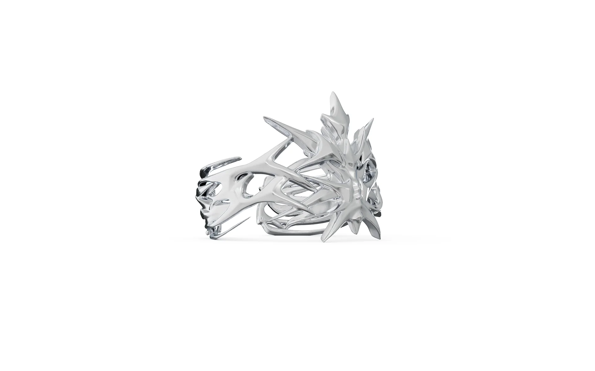 A ring that is emblematic to power and honour. Shaped in the image of an ‘Arena’ from liquid chrome, reminiscence to authority and tranquility. Can be worn on finger falang as well as the finger's bottom.