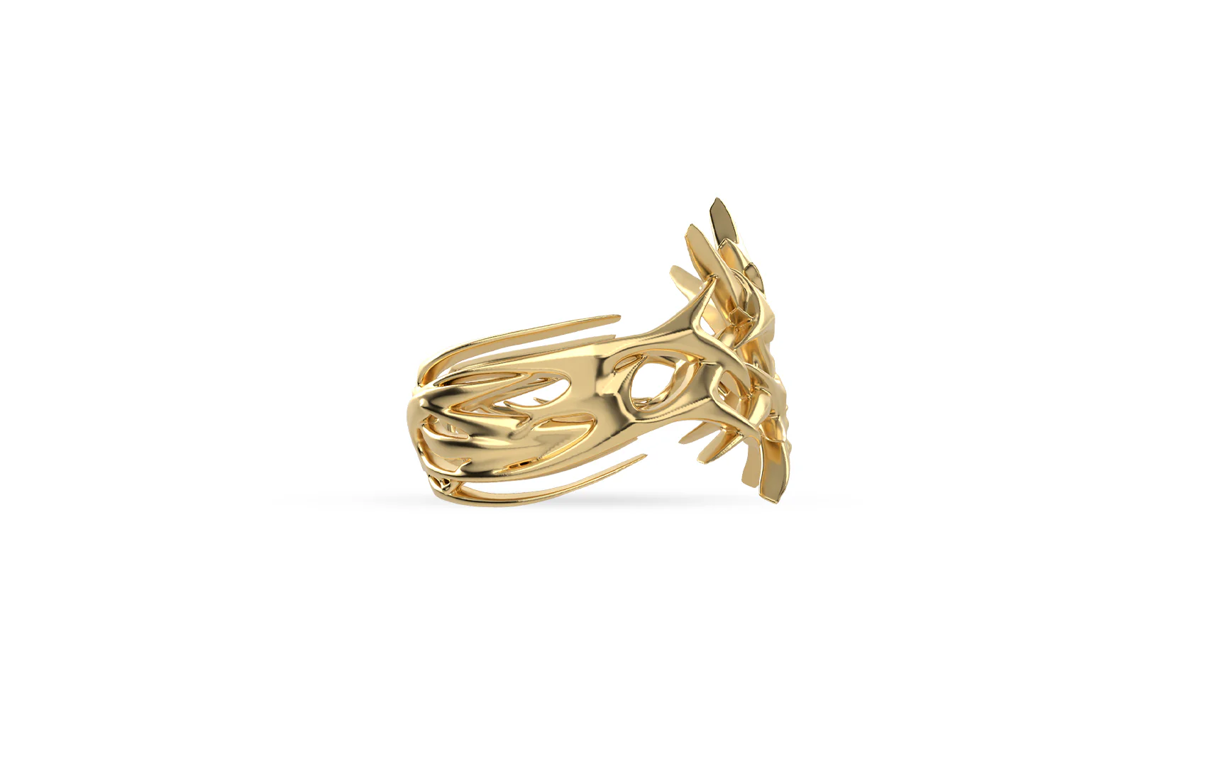 A ring that is emblematic to power and honour. Shaped in the image of an ‘Arena’ from liquid chrome, reminiscence to authority and tranquility. Can be worn on finger falang as well as the finger's bottom.